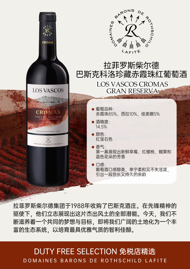 拉菲罗斯柴尔德巴斯克科洛珍藏赤霞珠红葡萄酒1箱装 750ml*6