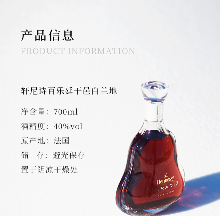 轩尼诗百乐廷干邑白兰地酒700ml(40%)