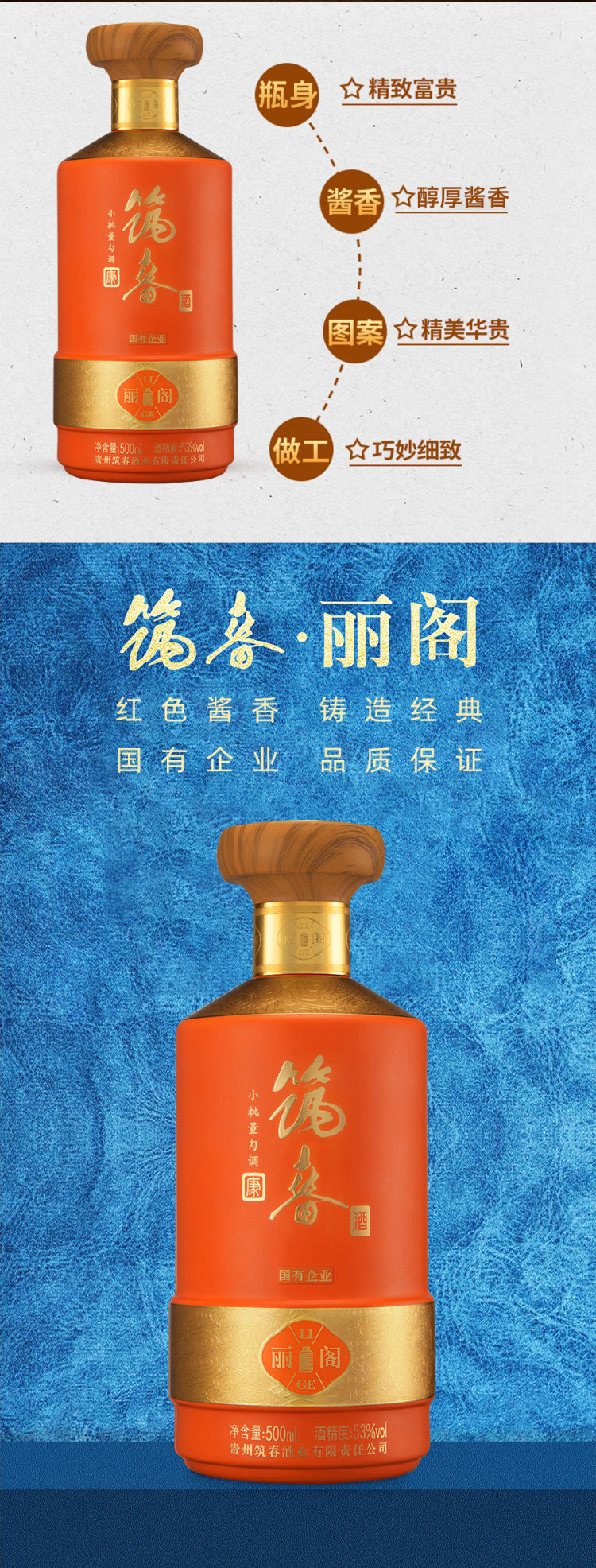 贵州筑春·丽阁酱酒 酱香白酒53% 500ML
