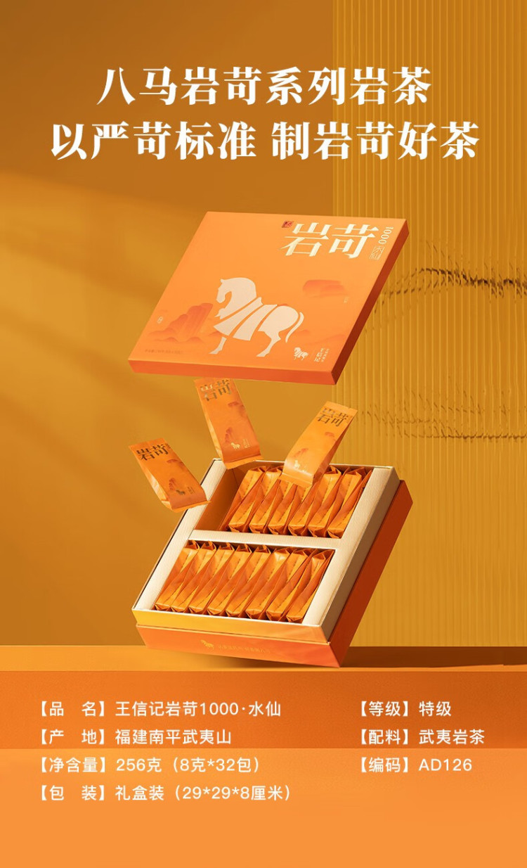 八马茶业岩苛1000水仙武夷岩茶礼盒装256g(8g*32包) 256g(8g*32包)