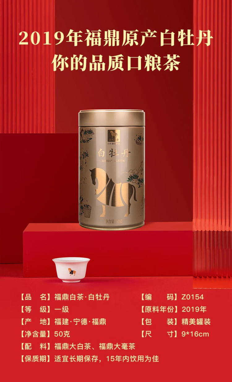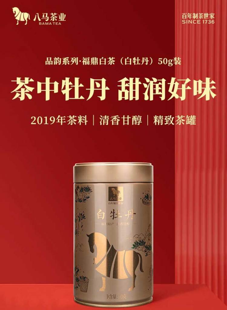 八马茶业品韵福鼎白茶白牡丹2019年茶料礼罐装50g 50g