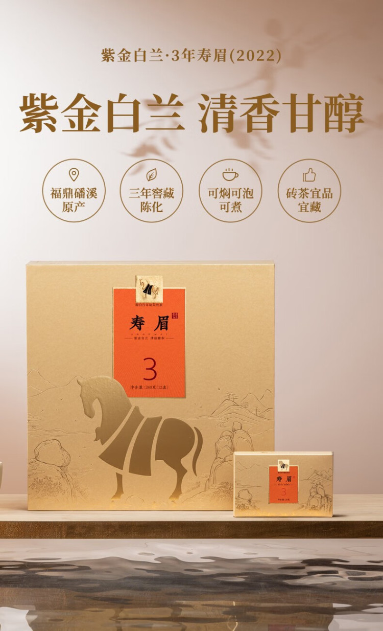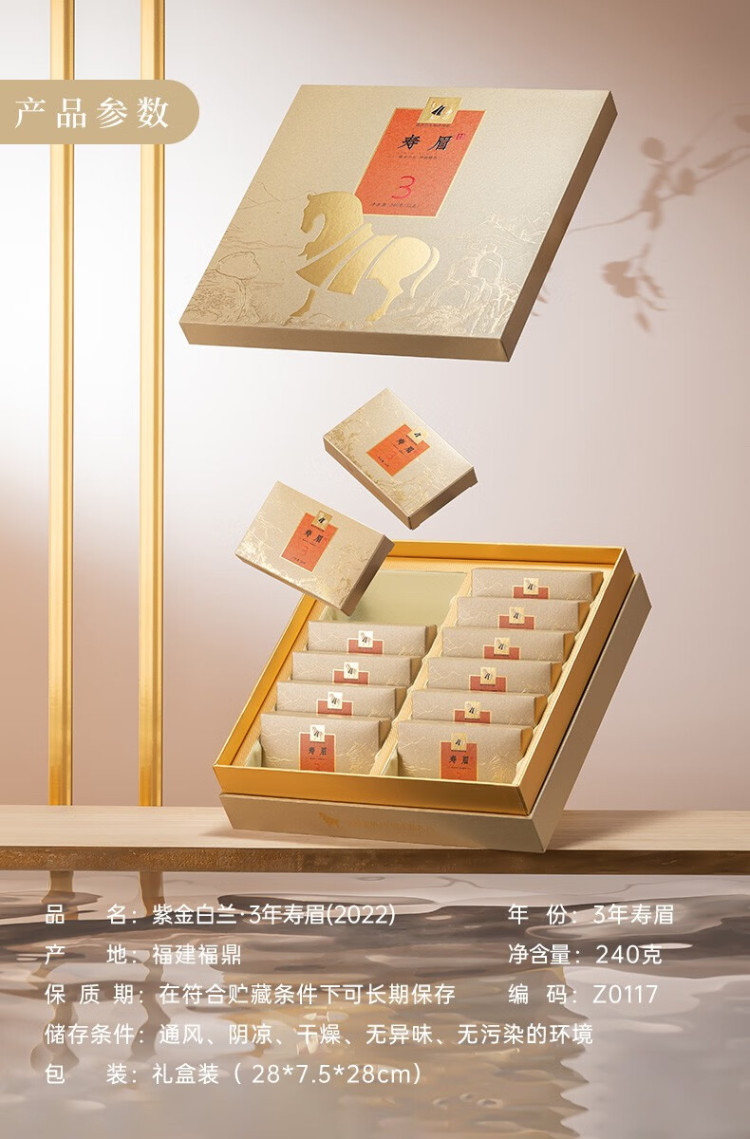 八马茶业紫金白兰3年寿眉2022藏老福鼎白茶礼盒装240g 240g