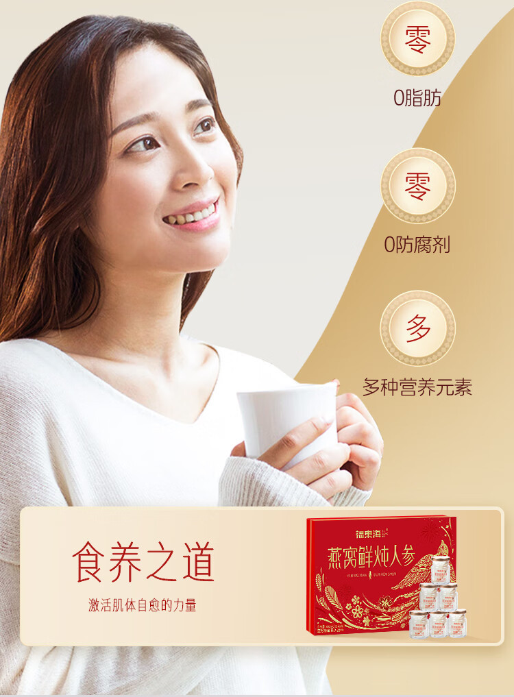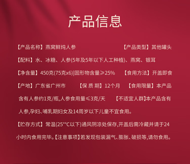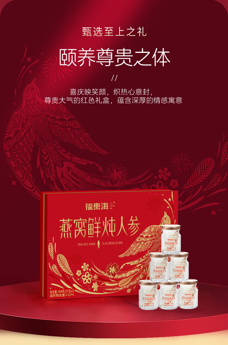 福东海燕窝鲜炖人参450克(75克x6)/盒 450G/盒