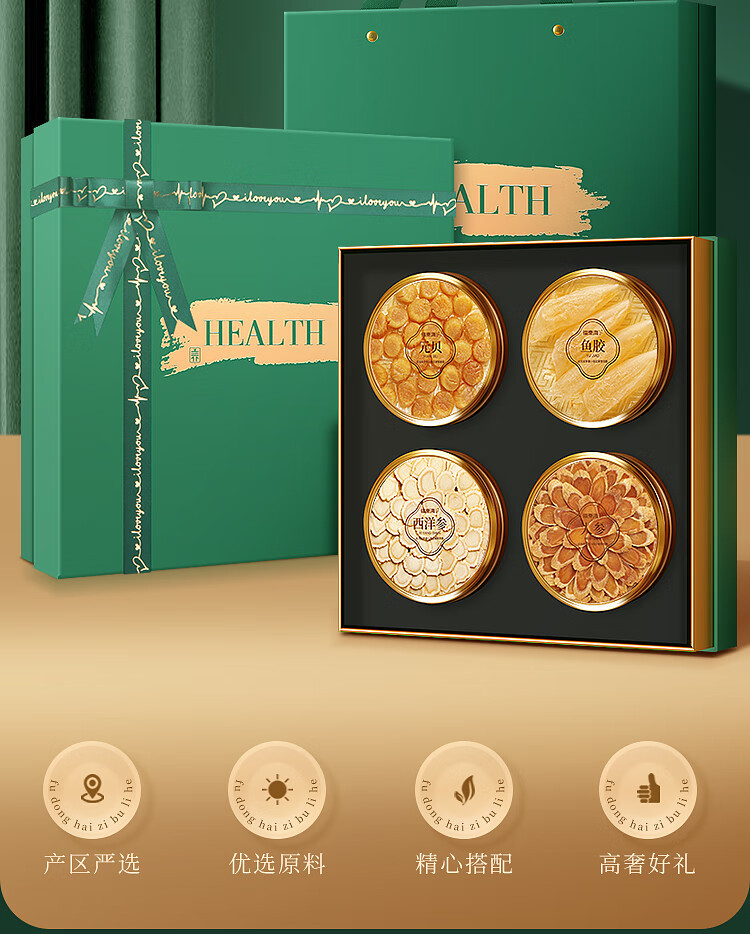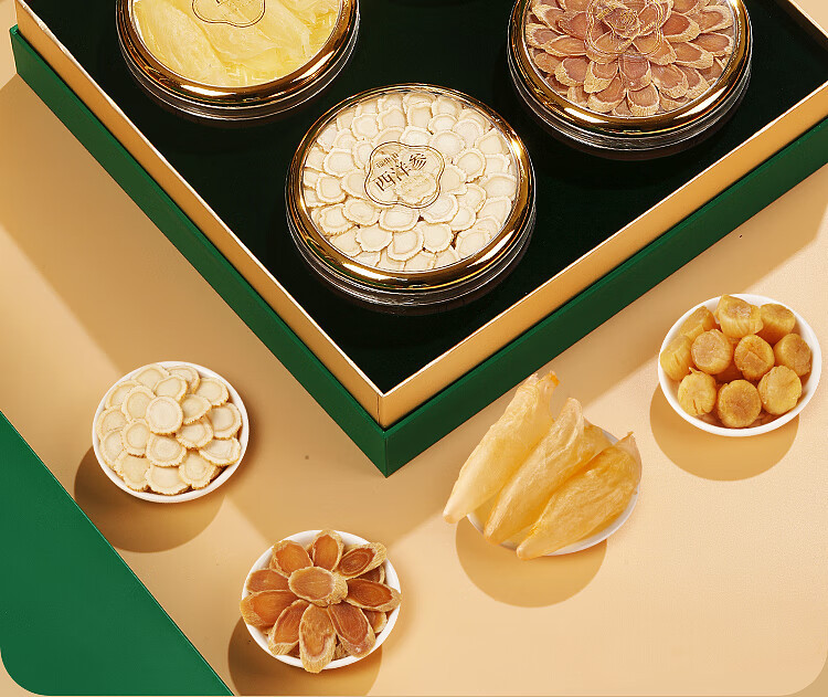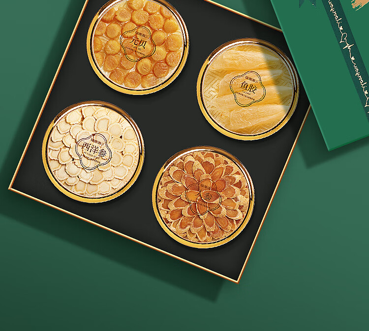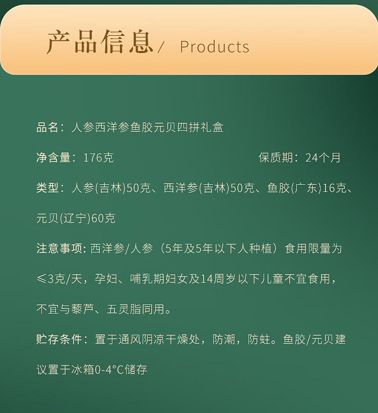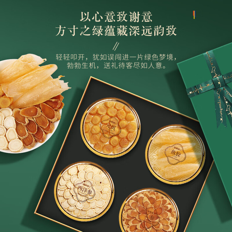 福东海四拼礼盒(绿色)176克/盒(人参50克+西洋参50克+鱼胶16克+元贝60克)