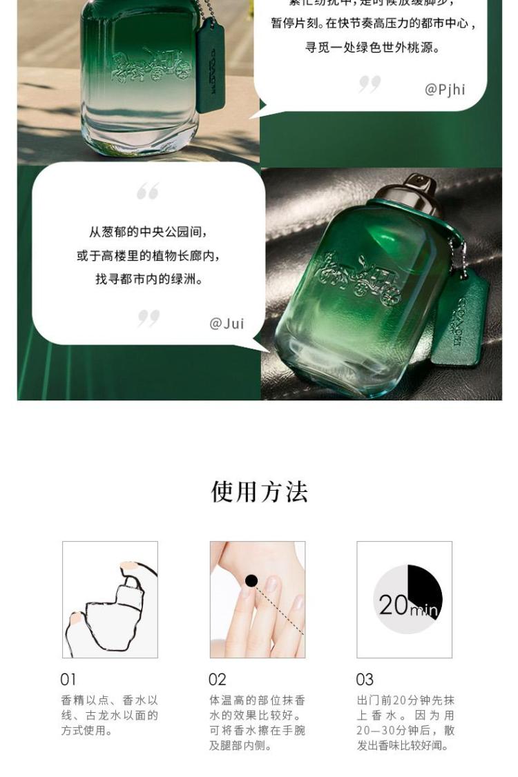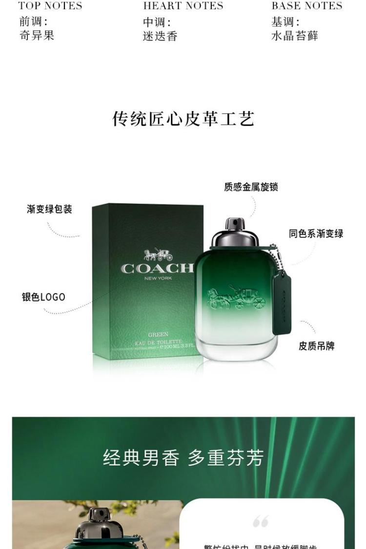 COACH蔻驰悠然绿韵男士淡香水木质绿叶调