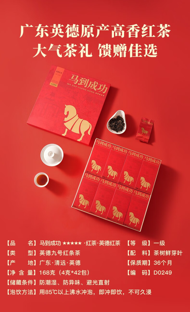 八马茶业马到成功5星 英德红茶茶叶168g