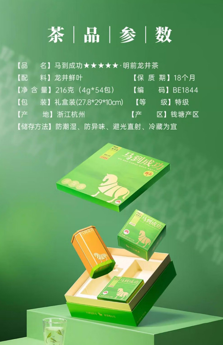 八马茶业马到成功明前龙井茶-216克(4克×54包)