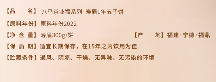 八马茶业福系列·寿眉1年五子饼(原料年份2022)300克/饼